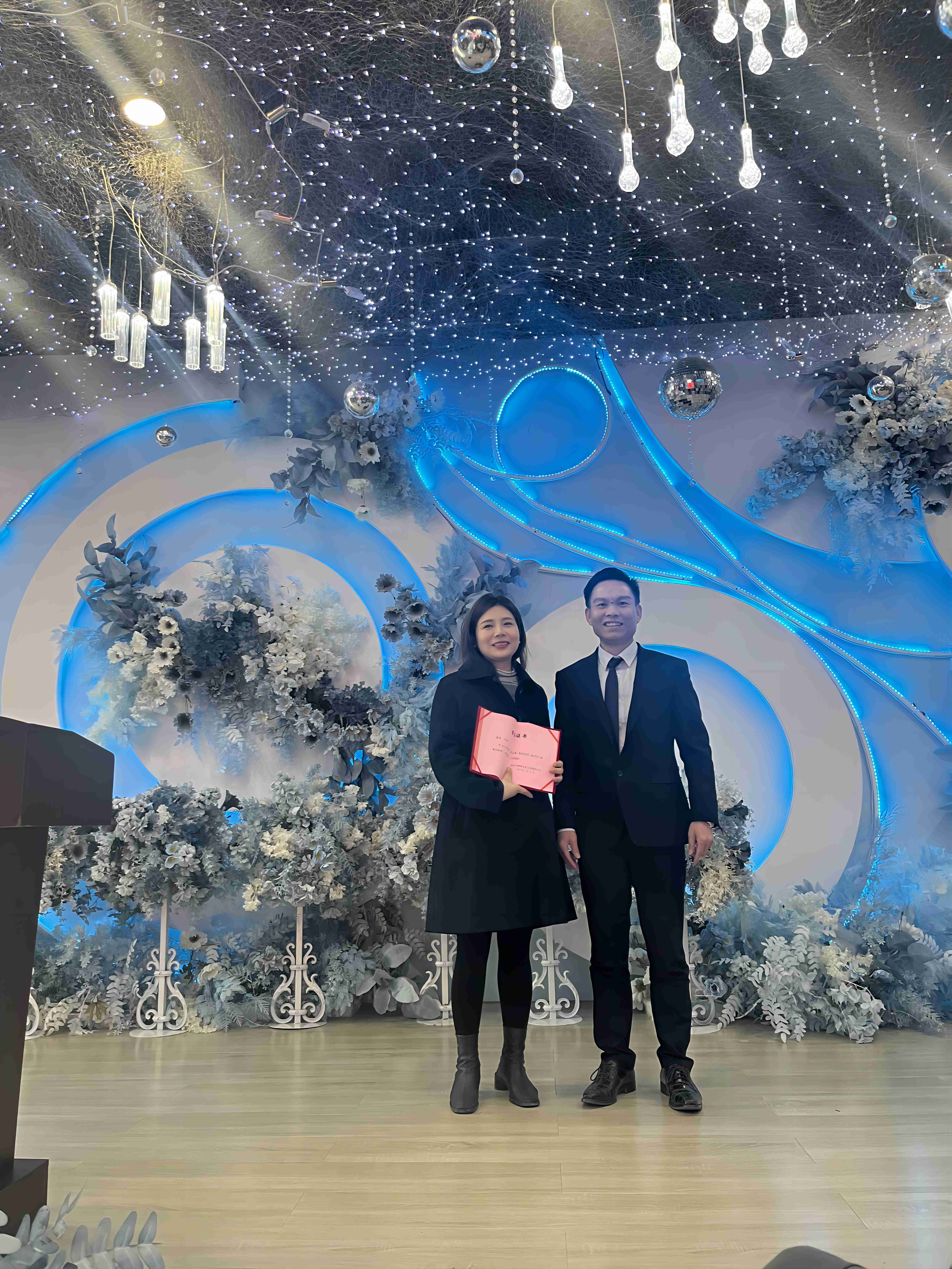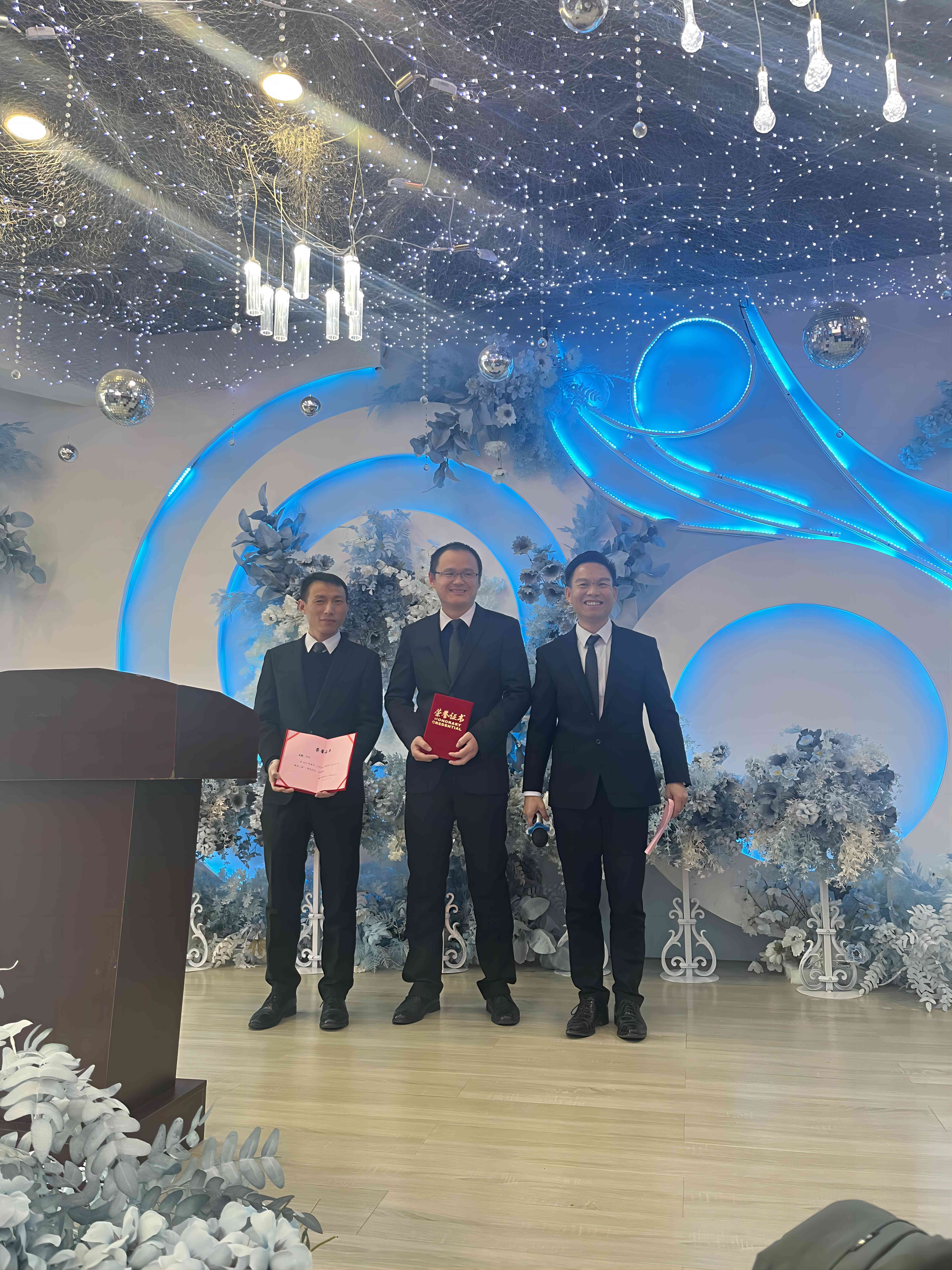 中鋼聯(lián)的今天,離不開一線員工的共同努力,一份付出,必有一份回報(bào)。主持人激情洋溢地宣讀 2022 年度公司“優(yōu)秀員工”的獲獎(jiǎng)?wù)呙麊?,分別是設(shè)計(jì)部部長吳鵬、項(xiàng)目部部長趙建昌、市場部周芳,他們懷著激動(dòng)而興奮的心情走上領(lǐng)獎(jiǎng)臺(tái)接受公司領(lǐng)導(dǎo)的嘉獎(jiǎng),符總為每位獲獎(jiǎng)人員頒發(fā)榮譽(yù)證書。最后由優(yōu)秀員工吳鵬和趙建昌分別上臺(tái)發(fā)言,公司全體成員也為獲獎(jiǎng)同事獻(xiàn)上了最真誠的祝福和最熱烈的掌聲。
